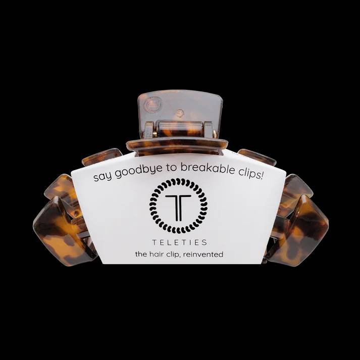 Ditch the discomfort of traditional clips for the Teleties Large Flat Round Clip in Tortoise, crafted from a nearly unbreakable material designed for ultimate durability. Its innovative, flat-lay design ensures a comfortable fit during yoga, lounging, or daily errands, making it the perfect upgrade for your relaxed lifestyle.