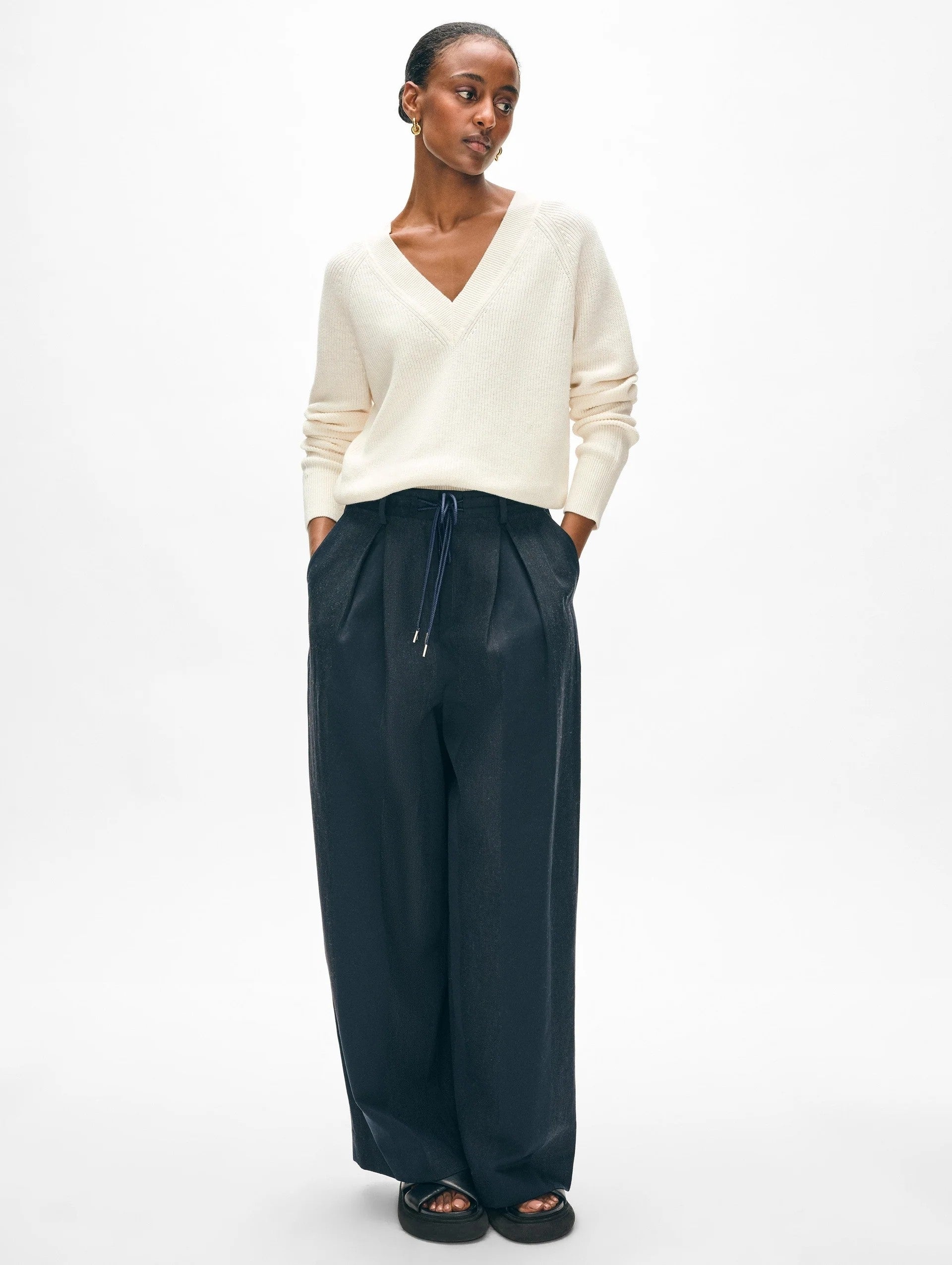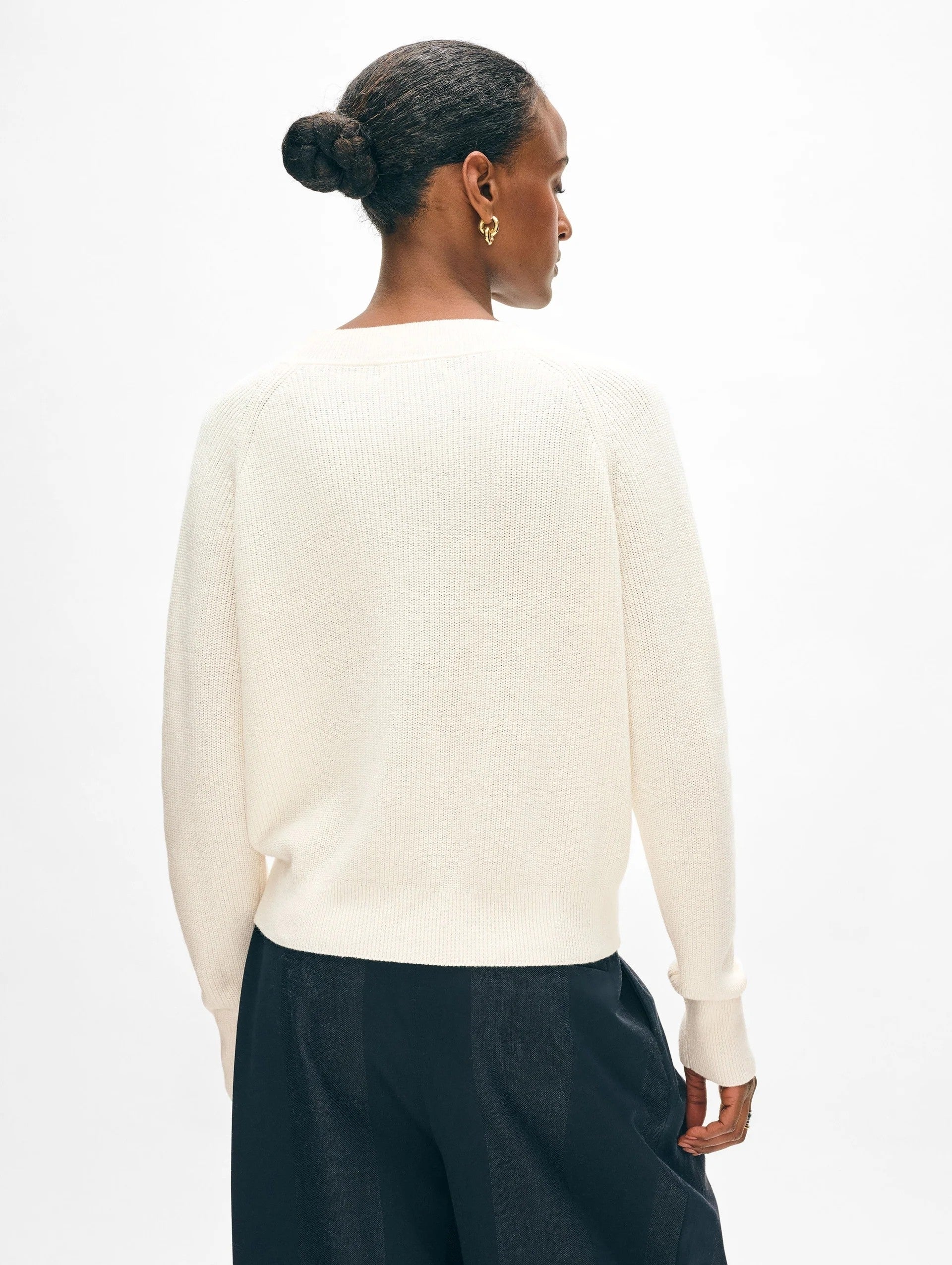 This fan favorite Ribbed V Neck is tailored to perfection, featuring an elegant neckline that's universally flattering. Its fine cotton blend and ribbed detailing strike the perfect balance of structure and stretch for an impeccable fit that moves with you. Style with denim for an understated, off-duty look that remains classically cool.