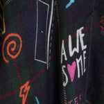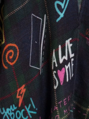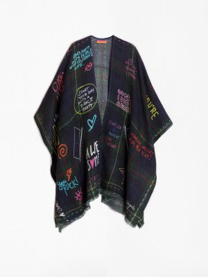 Scottish poncho with graffiti embroidery. Without collar. With openings for the arms.