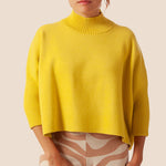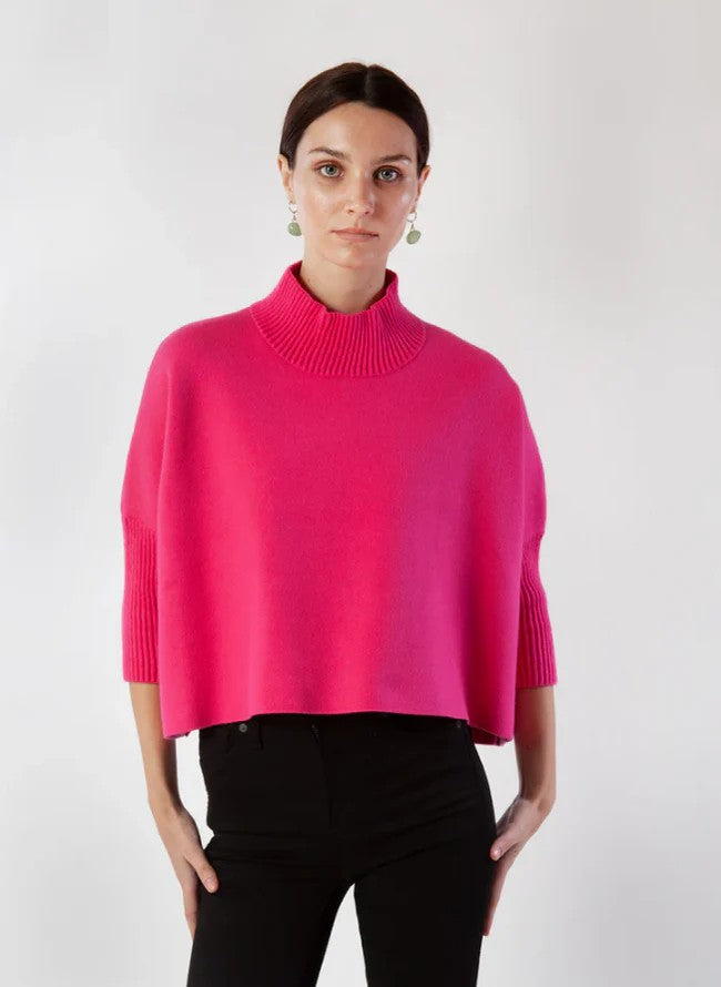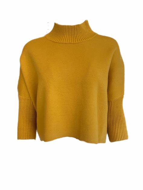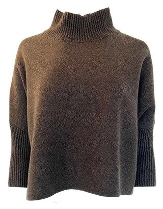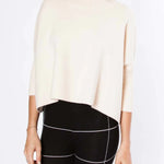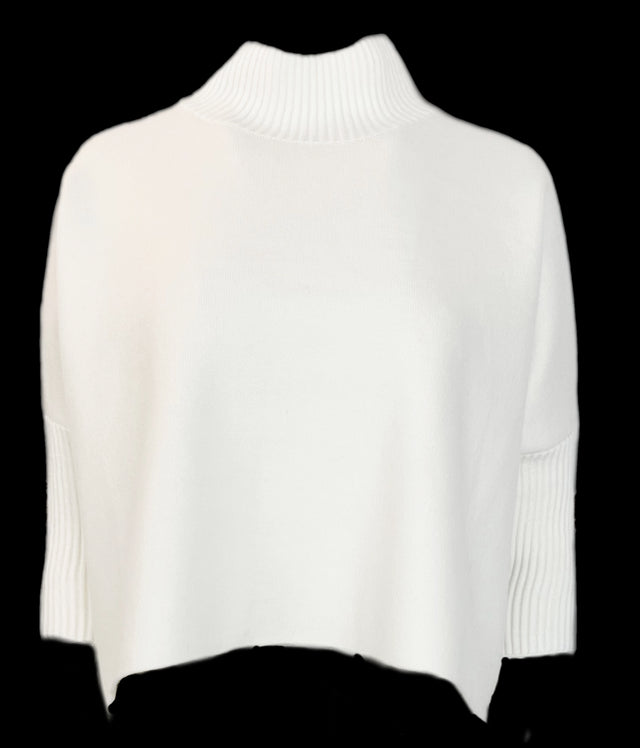 • Oversized boxy sweater with fitted rib turtleneck & 3/4 sleeves