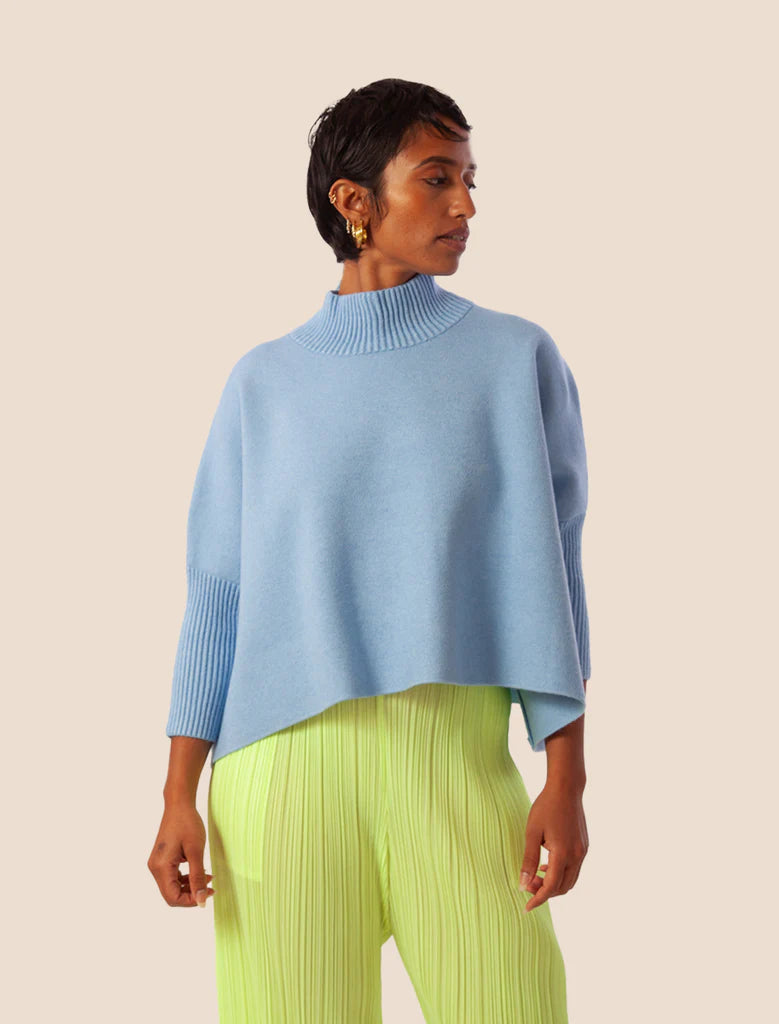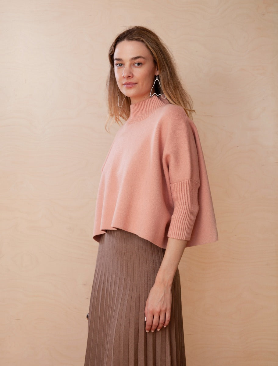 In a smooth and rich angora blend, the Aja sweater is a strong piece that combines a structured and sharp silhouette with the adaptability of knitwear. Pair yours with the Aja Skirt for a killer combo!