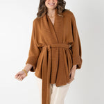 The Willow Wrap in Mocha is the definition of cozy sophistication. Crafted in a sumptuous cashmere–cotton blend, this wrap-style cardigan features a plush, chunky rib knit trim at the neckline and hem for a luxe textural touch. Its oversized silhouette drapes effortlessly, while the optional tie waist lets you cinch it in for a more defined shape. Equal parts comfort and elegance, it’s the perfect layer to wrap yourself in from brisk mornings to fireside evenings.