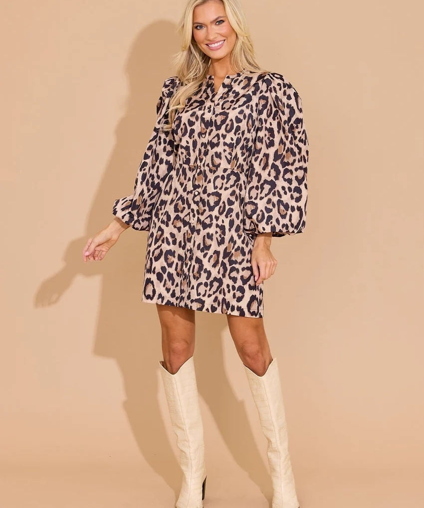 Button Puff Sleeve Midi
