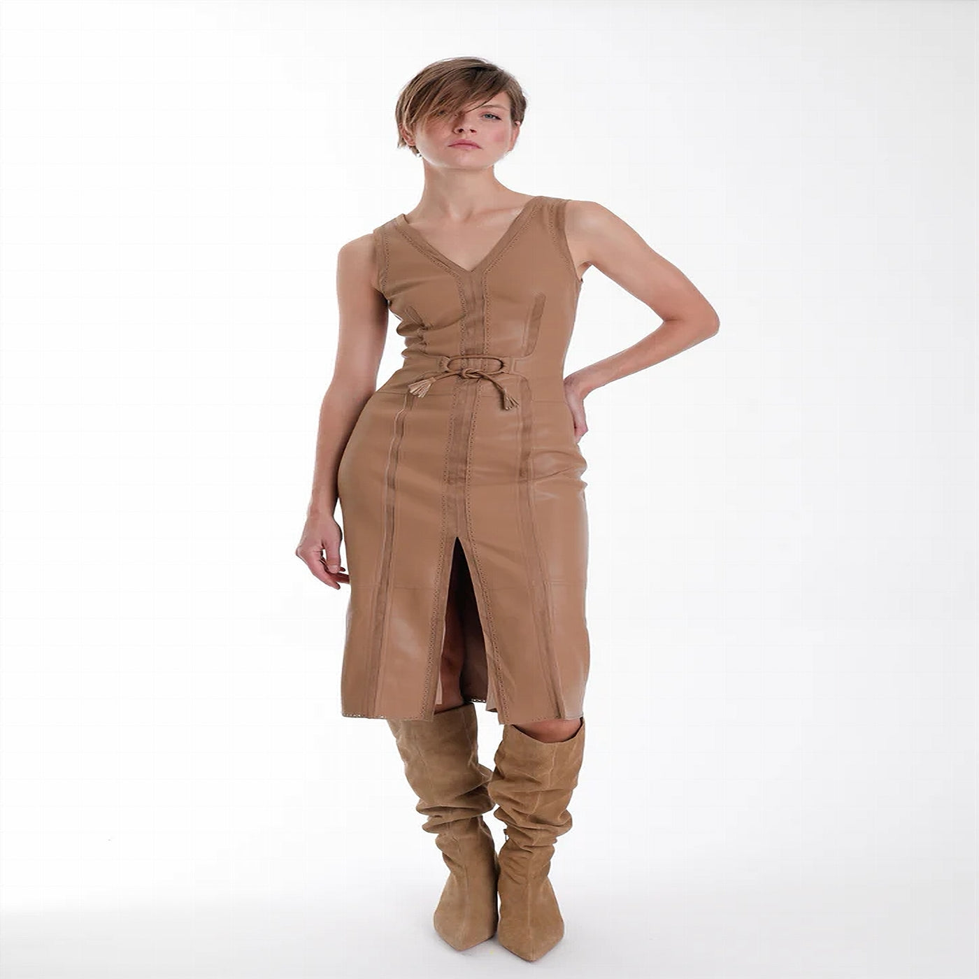 Mona Leather Midi Dress