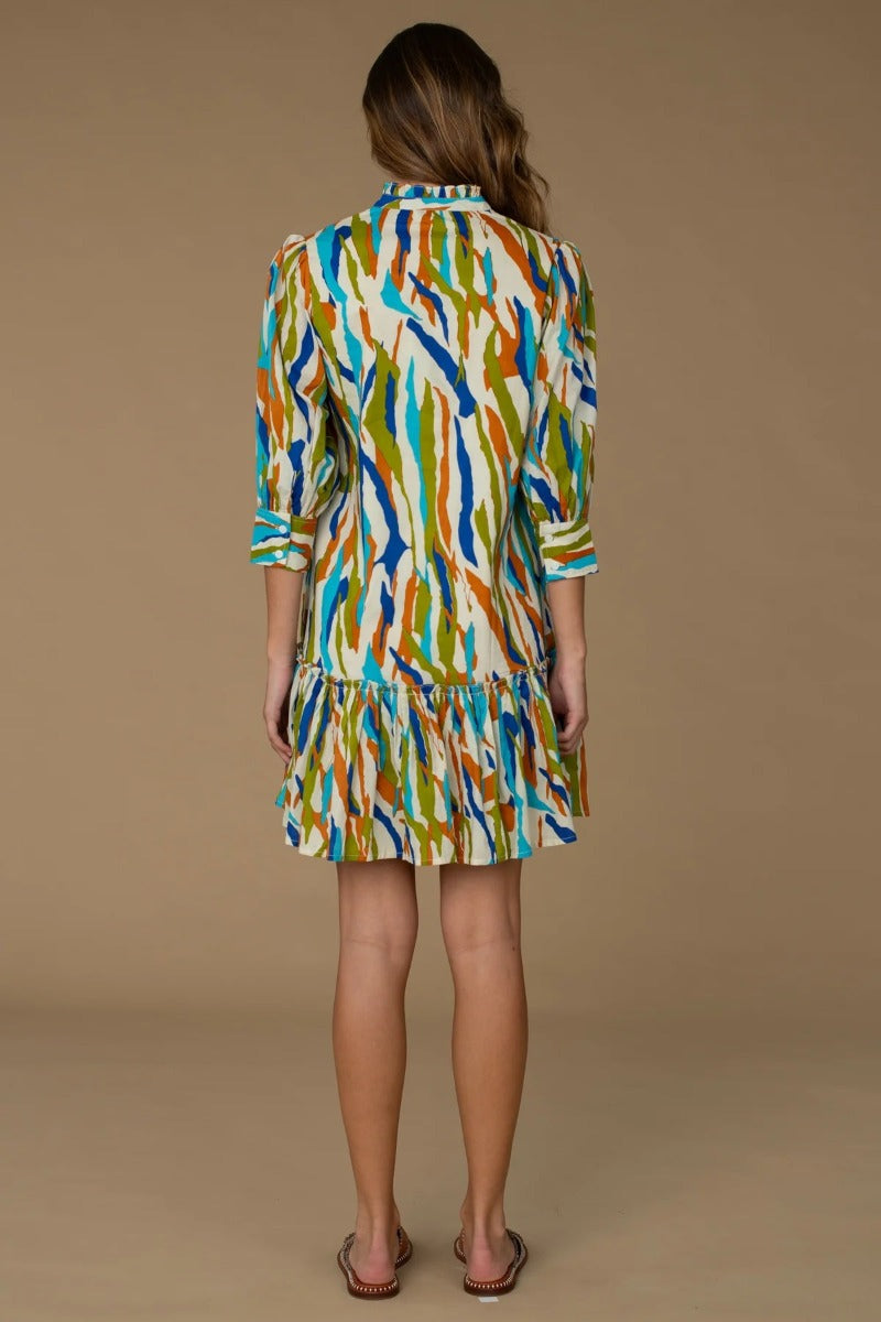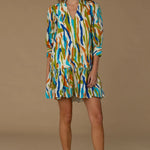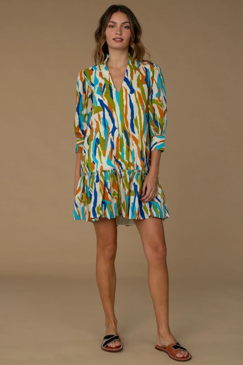Say hi to our Chloe Dress, a new design that we are sure you will obsess over. The Chloe Dress is a tunic-style swing silhouette featuring a slight high-low ruffle detailed skirt hem, giving her the ideal, flirty mini length. Ruffle detailing also trims the V-neckline, enhancing the style's femininity while seamlessly keeping her sophisticated with a three-quarter length, wide, button cuff sleeve. This mini dress can be styled up or down with ease. Chloe's versatility keeps her effortlessly chic from day to night; pair her with minimal jewelry and strappy sandals or sneakers for a trendy look!