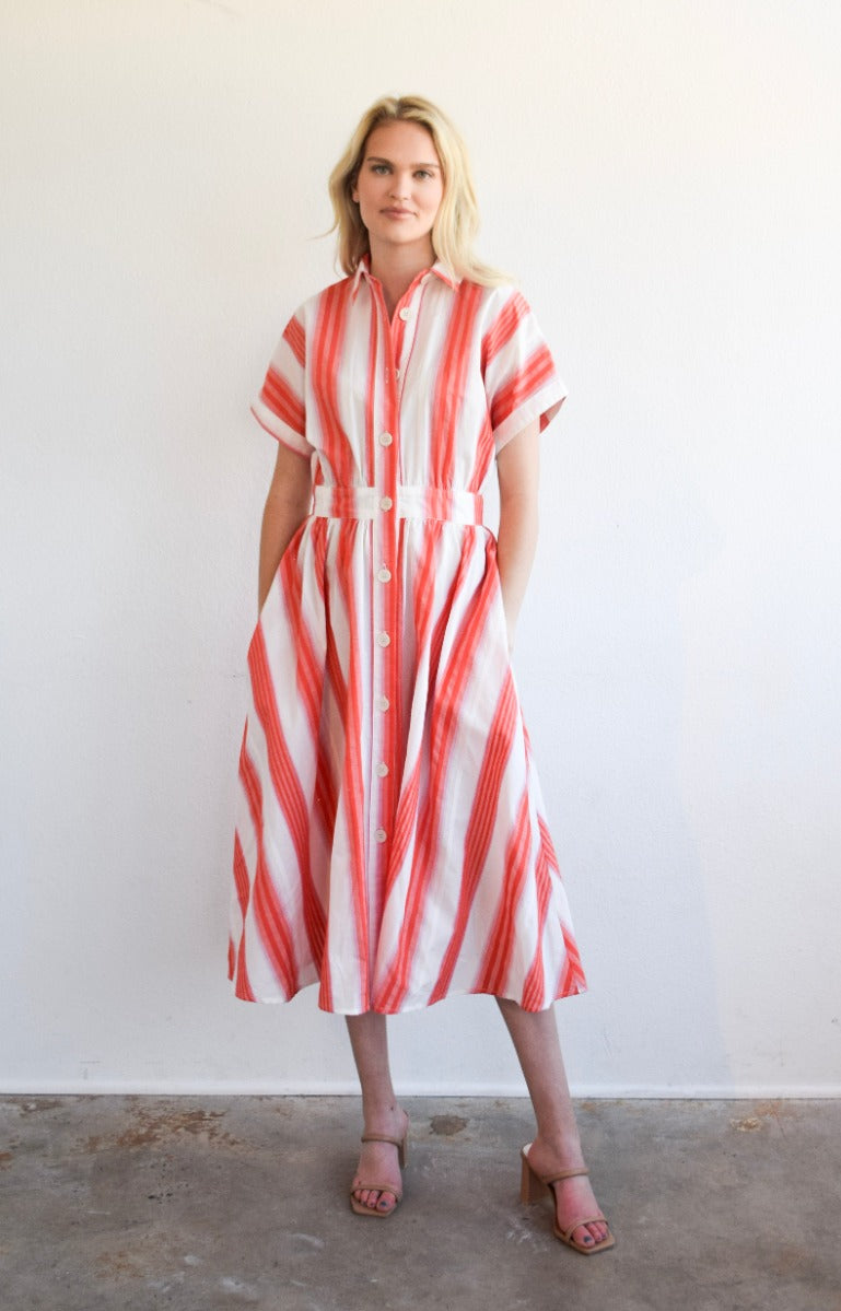 The Drop Shoulder Stripe Dress offers a relaxed yet chic look with its casual drop shoulder design and classic stripe pattern.