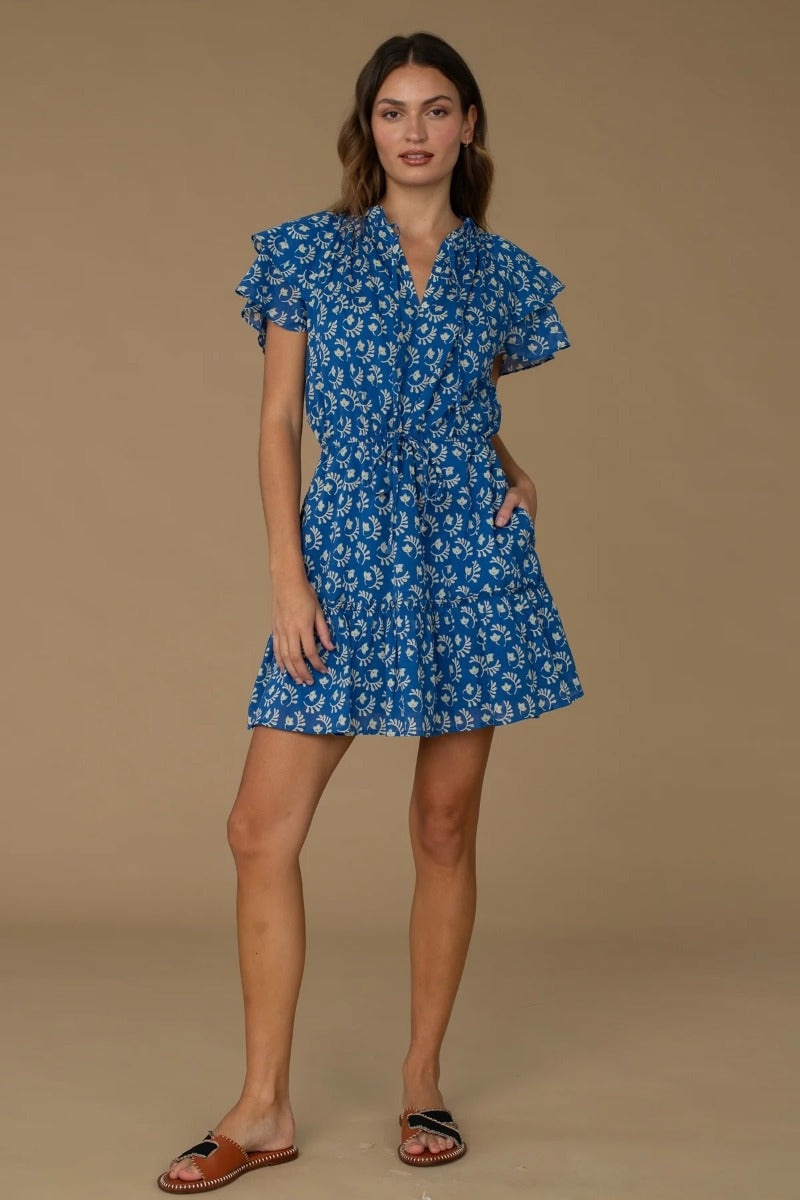 The Tinsley Dress; a classic here at Elizabeth James. Tinsley exudes feminine charm and effortless style. Its playful silhouette features a flirty length that falls above the knees, making it perfect for warm-weather occasions or casual outings. The drawstring waist adds a touch of versatility, allowing for customizable adjustments to accentuate the waist. Another great detail she offers are the delicate flutter sleeves, adding flair to the overall design. These softly ruffled sleeves gently cascade over the shoulders. This mini dress is incredibly versatile, suitable for a variety of occasions. Whether worn casually with sandals for a day out or dressed up with heels and statement jewelry for a more special event, it effortlessly transitions from day to night with ease.