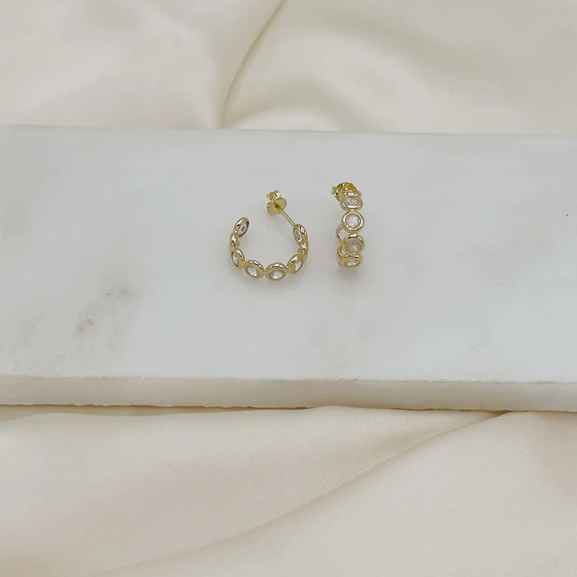 Burst into style with our Gianna hoops that shine with a golden glow. The CZ accents add a hint of sparkle, making them a staple piece for your day-to-night wardrobe.