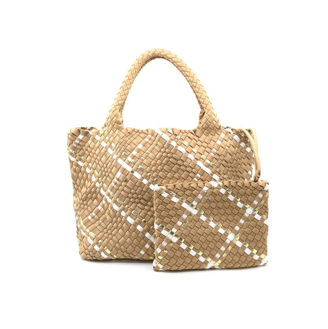 Make a statement with the Metallic Woven Tote Bag, a chic accessory perfect for any occasion.