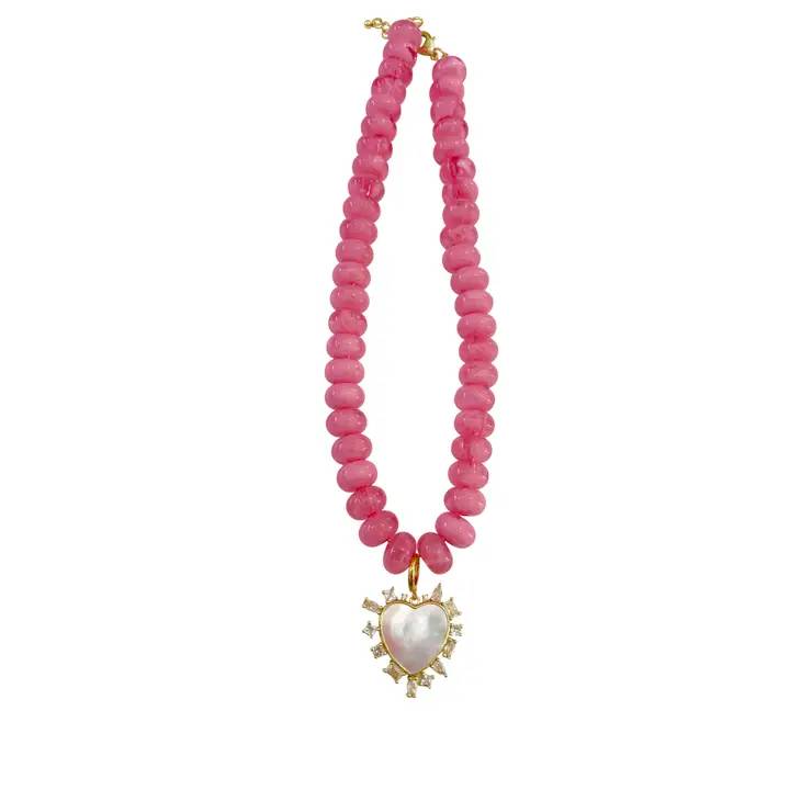 The Regal Beaded Necklace w/Heart exudes an air of timeless majesty, pairing deep, richly colored beads with a brilliantly polished heart pendant. This standout accessory commands attention with its sophisticated charm, making it the crowning jewel of any formal or elevated ensemble.