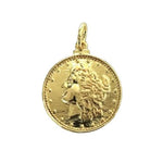 This 18K Gold Plated Sterling Silver Goddess Coin Charm is designed to look like an ancient coin, featuring a beautiful goddess figure in the center.