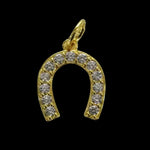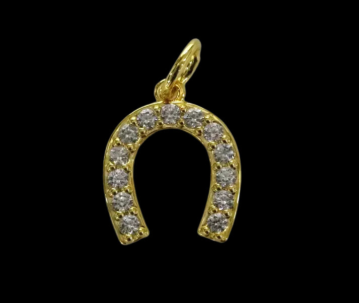 This Horseshoe Charm is crafted from sterling silver and plated with 18K gold, with diamond cubic zirconia stones for extra brilliance. You can wear it to bring luck and elegance to your wardrobe.