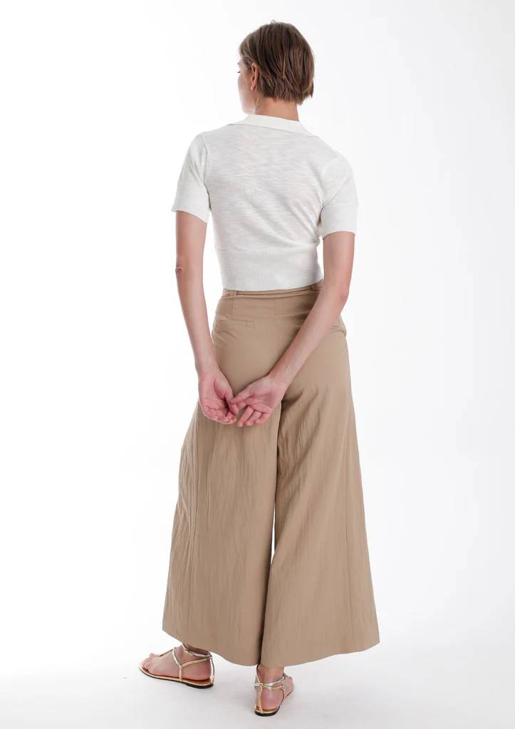 Meet the Karina Grimaldi Aspen Knit Top. The Aspen Knit Top is a classic white cropped shirt. It goes with absolutely everything! It is cropped and had a collar with three buttons.