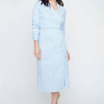 This faux wrap midi shirt dress offers the sophisticated look of a classic wrap with the effortless security of a streamlined shirt silhouette. Its cinched waist and elegant length create a flattering, professional profile that moves seamlessly from a morning meeting to an evening dinner.