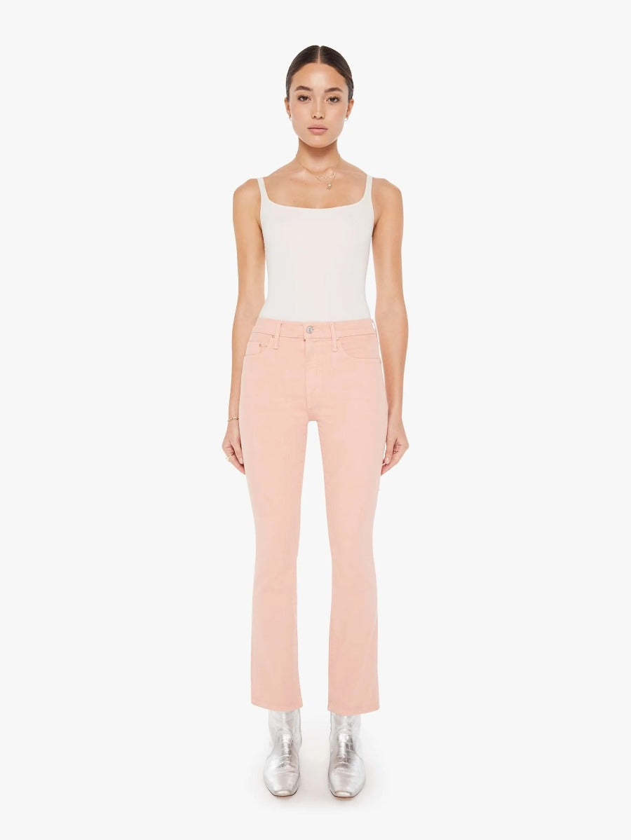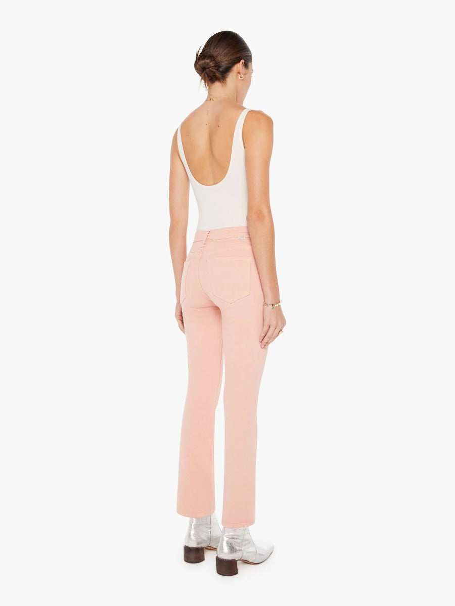 Peachy. This high-rise bootcut has a 29-inch inseam and a clean hem. Made from cotton with a touch of stretch, Peach Parfait is a faded baby pink.