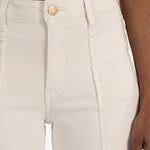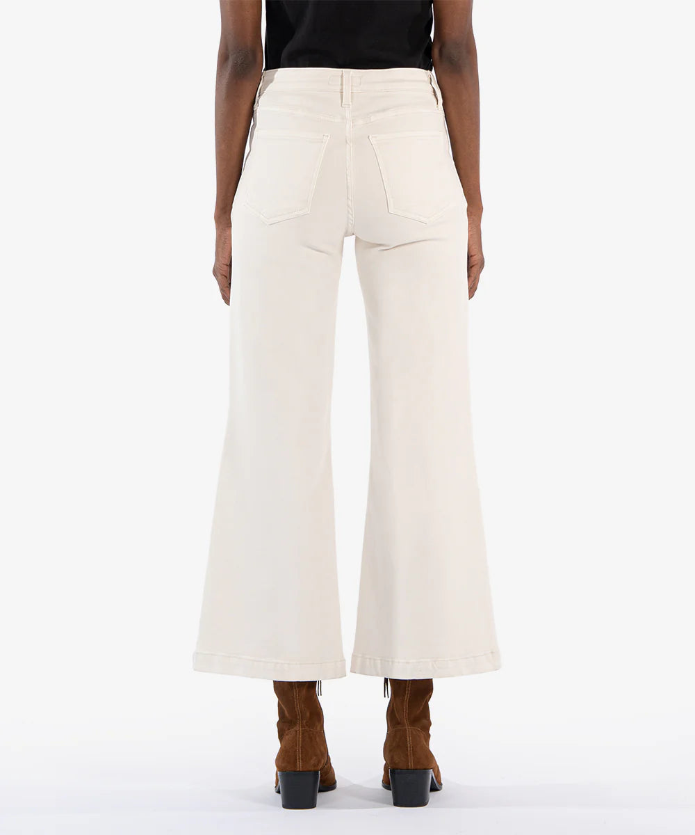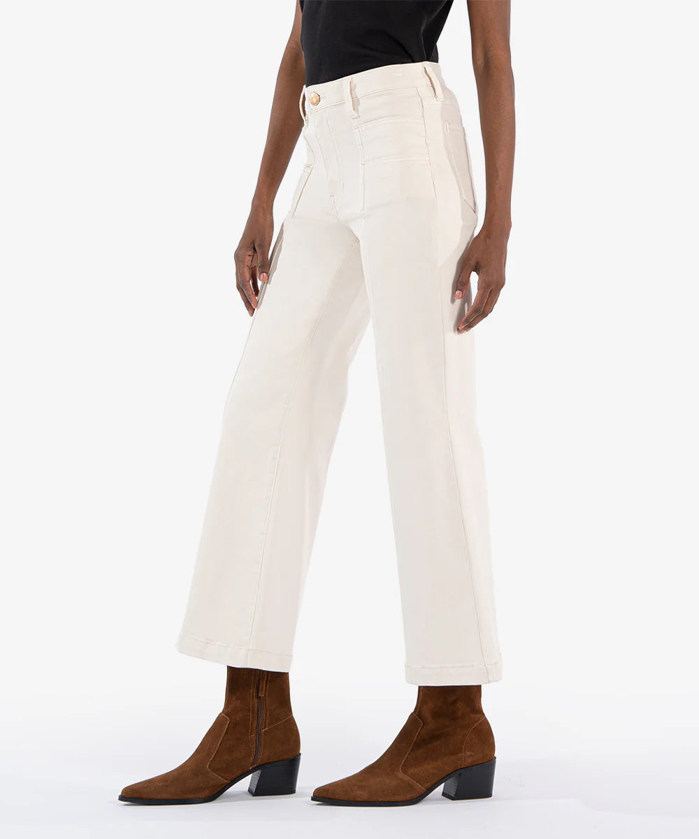 Utility pockets and cool stitching in a wide-leg jean that fit slimmer along the thighs and flare out near the hems.