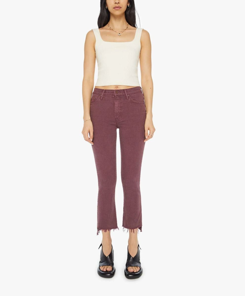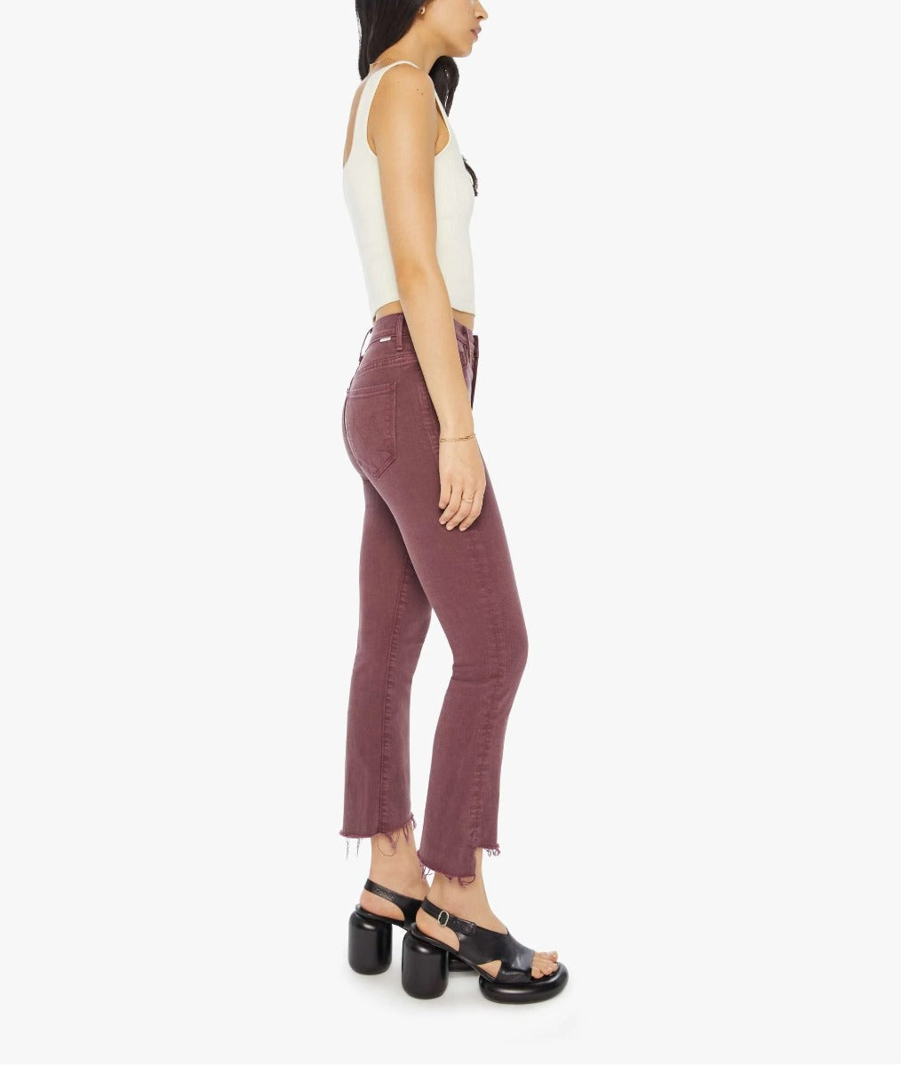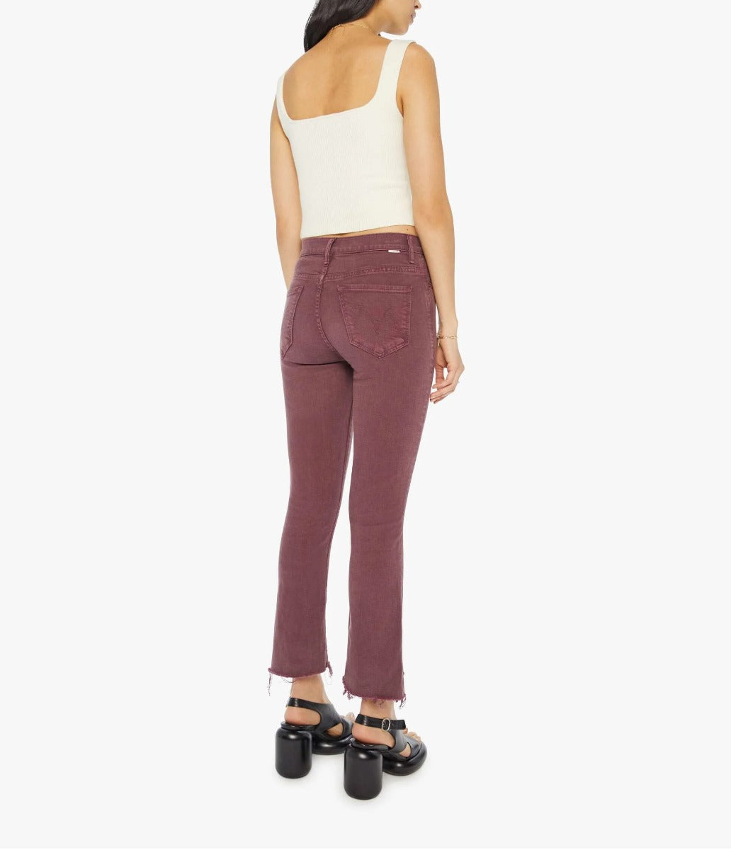 You had me at merlot. This iconic high-waisted bootcut hits at the ankle with a frayed step hem. Cut from a cotton blend with a touch of stretch, Mauve Wine is a faded maroon with tonal hardware.