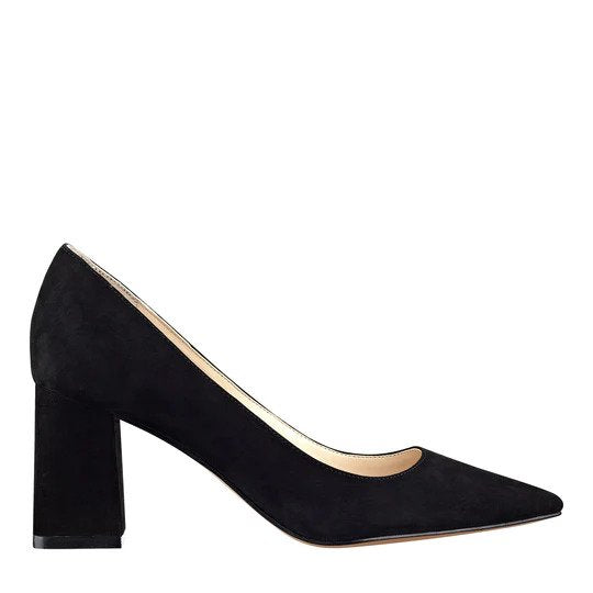 Classic pointy-toe flared heel dress pump with leather sole. We love this update to the classic pump.