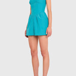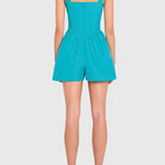 Make an impression in the Bellini Romper. This sleeveless design features a gathered bust, corset-style bodice, and wide-leg shorts for a relaxed fit. Pair it with mules for a casual look or white heels for a more polished finish.