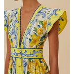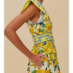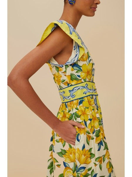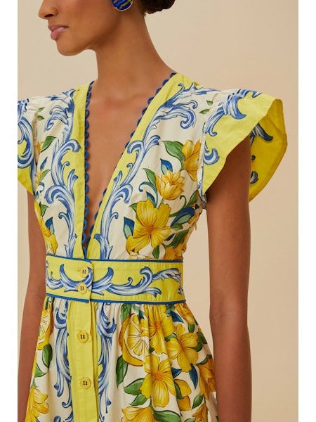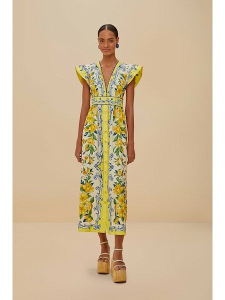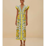 Embrace an enchanting blend of vivid charm and playful elegance with the Off-White Sicily Scarf Organic Cotton Maxi Dress by FARM Rio. Crafted with responsible materials, its lively floral pattern blooms against a backdrop of soft hues, highlighted by a flattering V neckline. The dress features butterfly sleeves and a cinched waist, creating a breezy, yet sophisticated silhouette that effortlessly captures the spirit of tropical artistry.