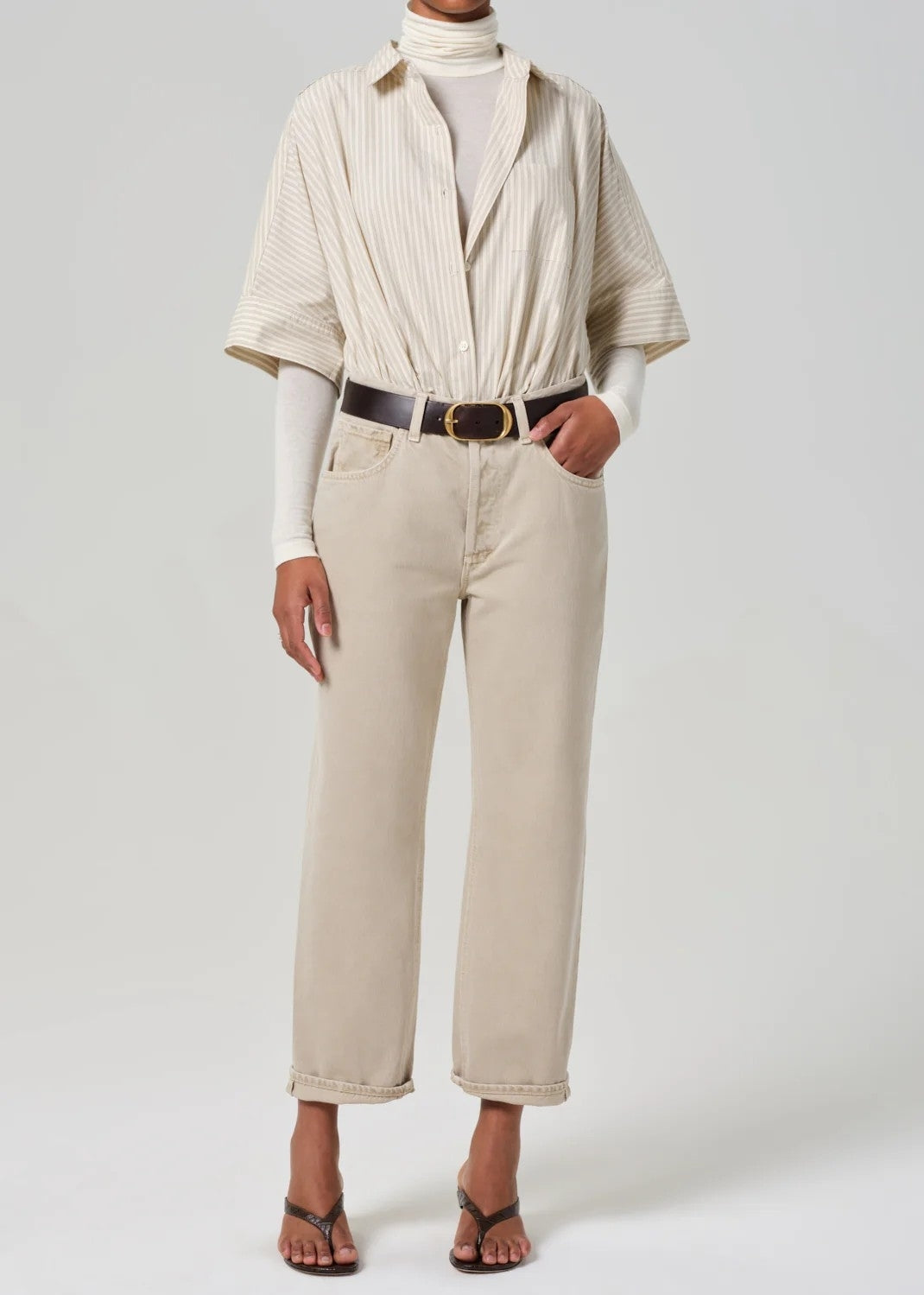 Intended to be worn low slung on the hip - the Dahlia features a relaxed vintage leg that slightly tapers down to the ankle. Finished with a charming uneven baby rolled cuff.