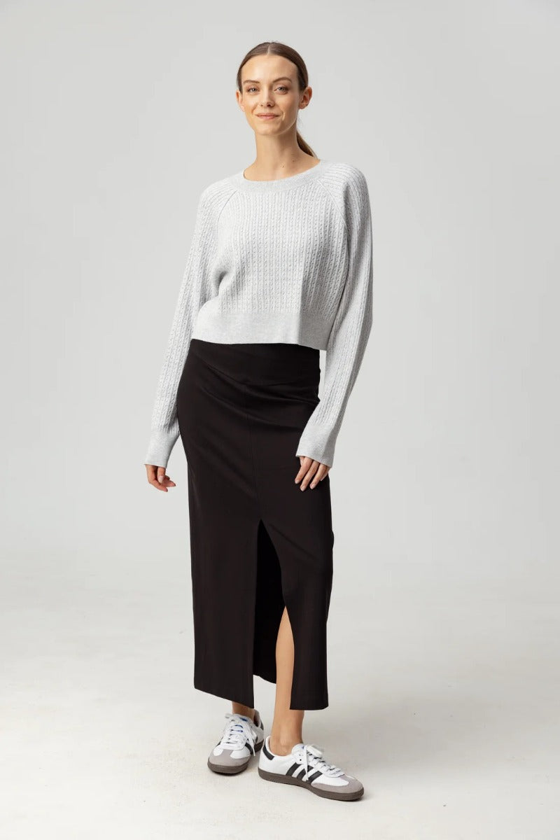 Introducing Venice, made in our lux viscose blend yarn in an elegant cable stitch. A boxy fit through the body, we advise to size down if you do not like a slightly oversized fit. A slightly cropped length, Venice will sit right at the top of the waistband of your high-rise jeans.