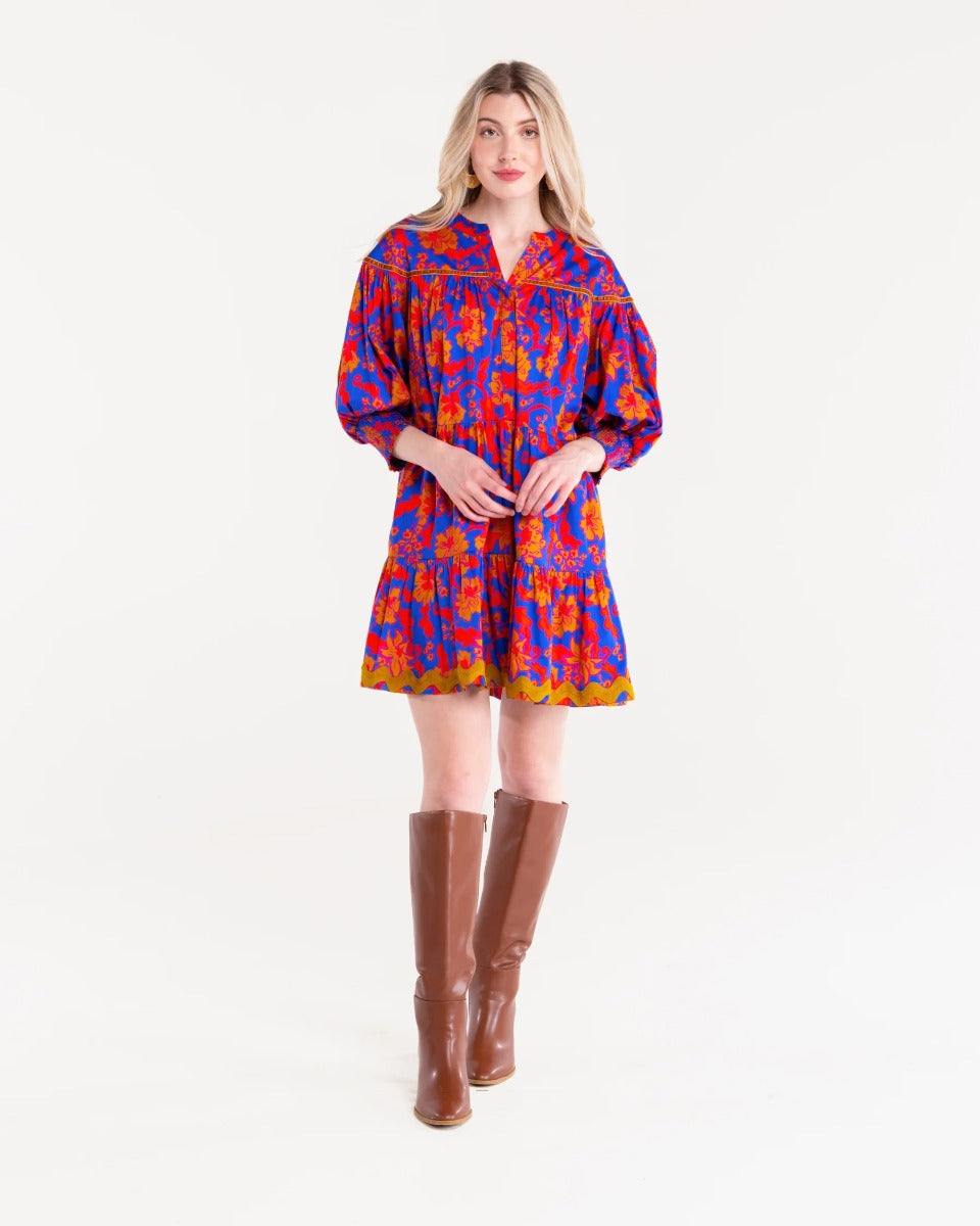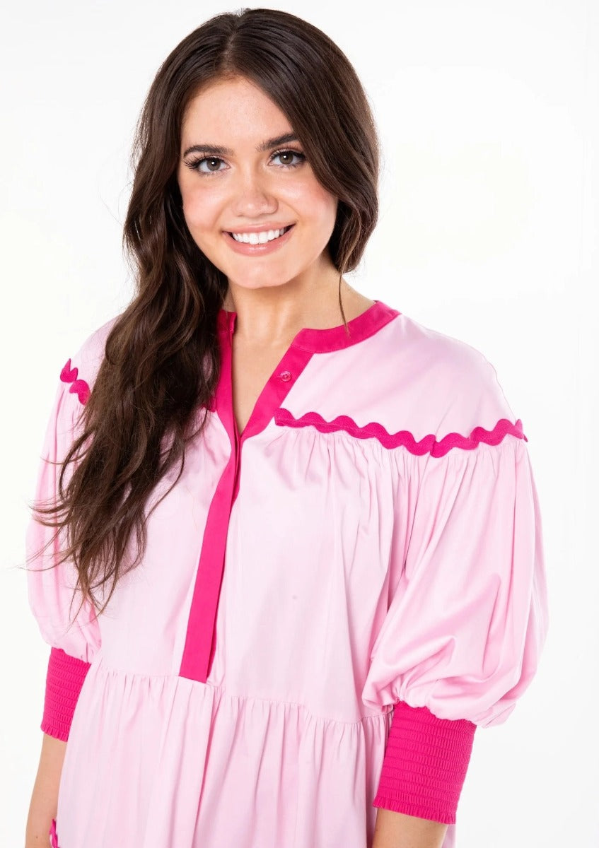 Stylish dress featuring ric-rac trims by Alden Adair.