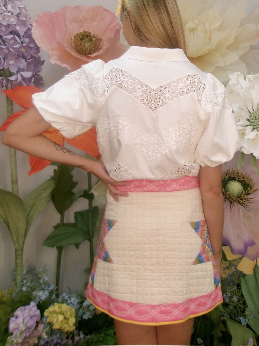 Step out in style with the Louise Skirt, adorned with fancy star detailing for a touch of whimsy. This skirt brings a playful flair to any outfit, perfect for those looking to make a fashionable statement.
