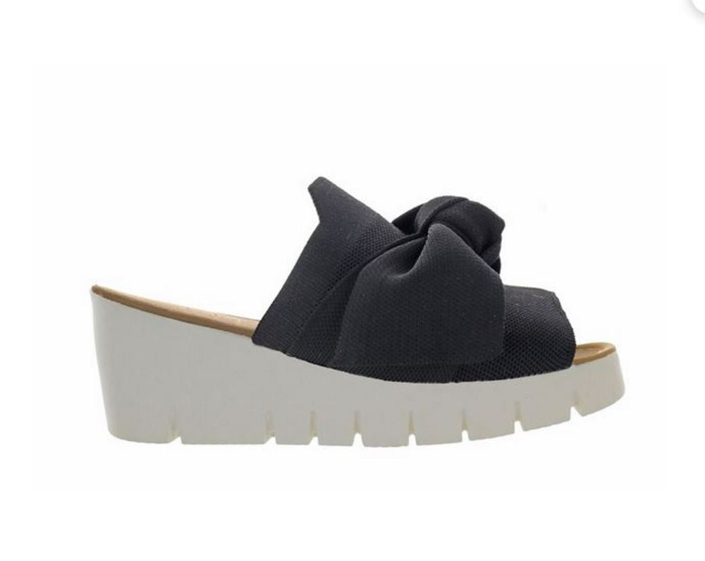 Sporty and sophisticated bow-embellished wedge sandals