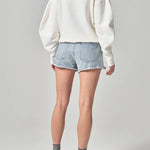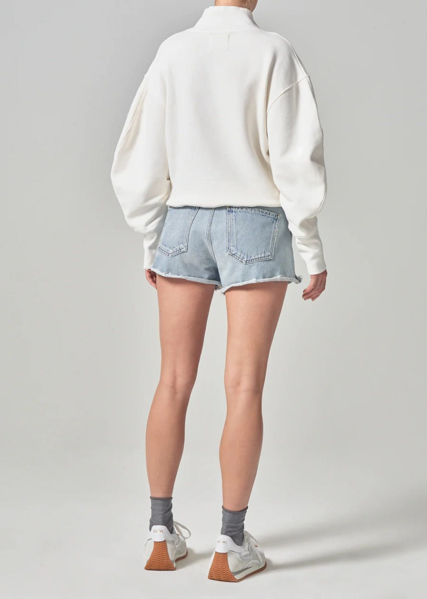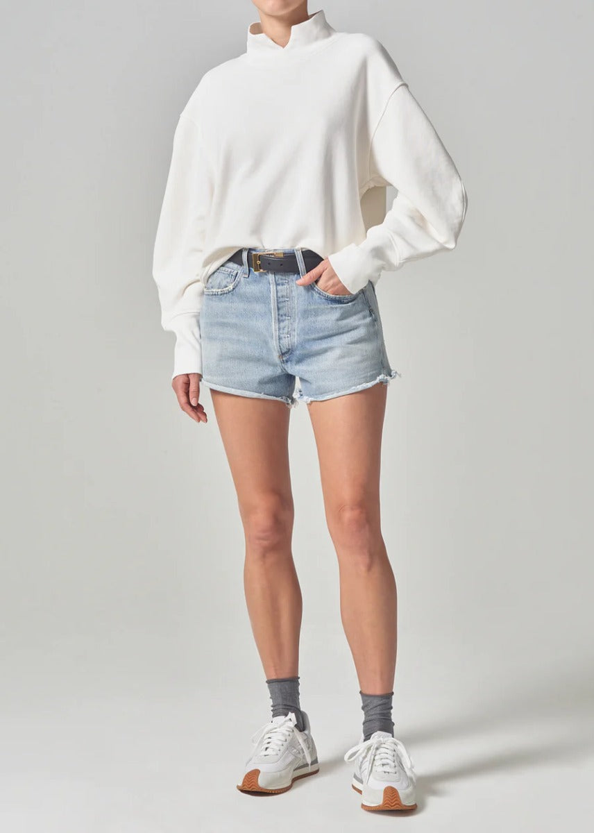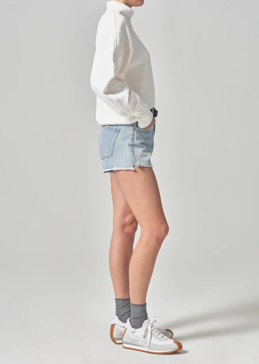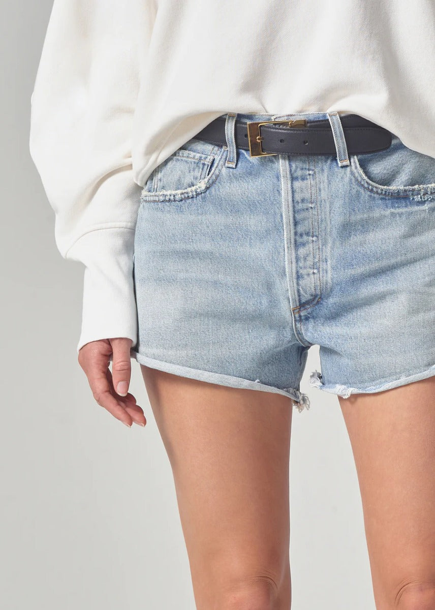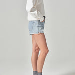 A true summer staple, this relaxed mid-rise offers an easy fit with undone edges.