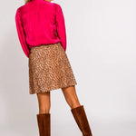 The Maria mini skirt is ready from the Fall season in a baby cord fabric in our Leopard print. Take her from 9-5 to 5-9 with a solid or matching top and your favorite heels.