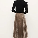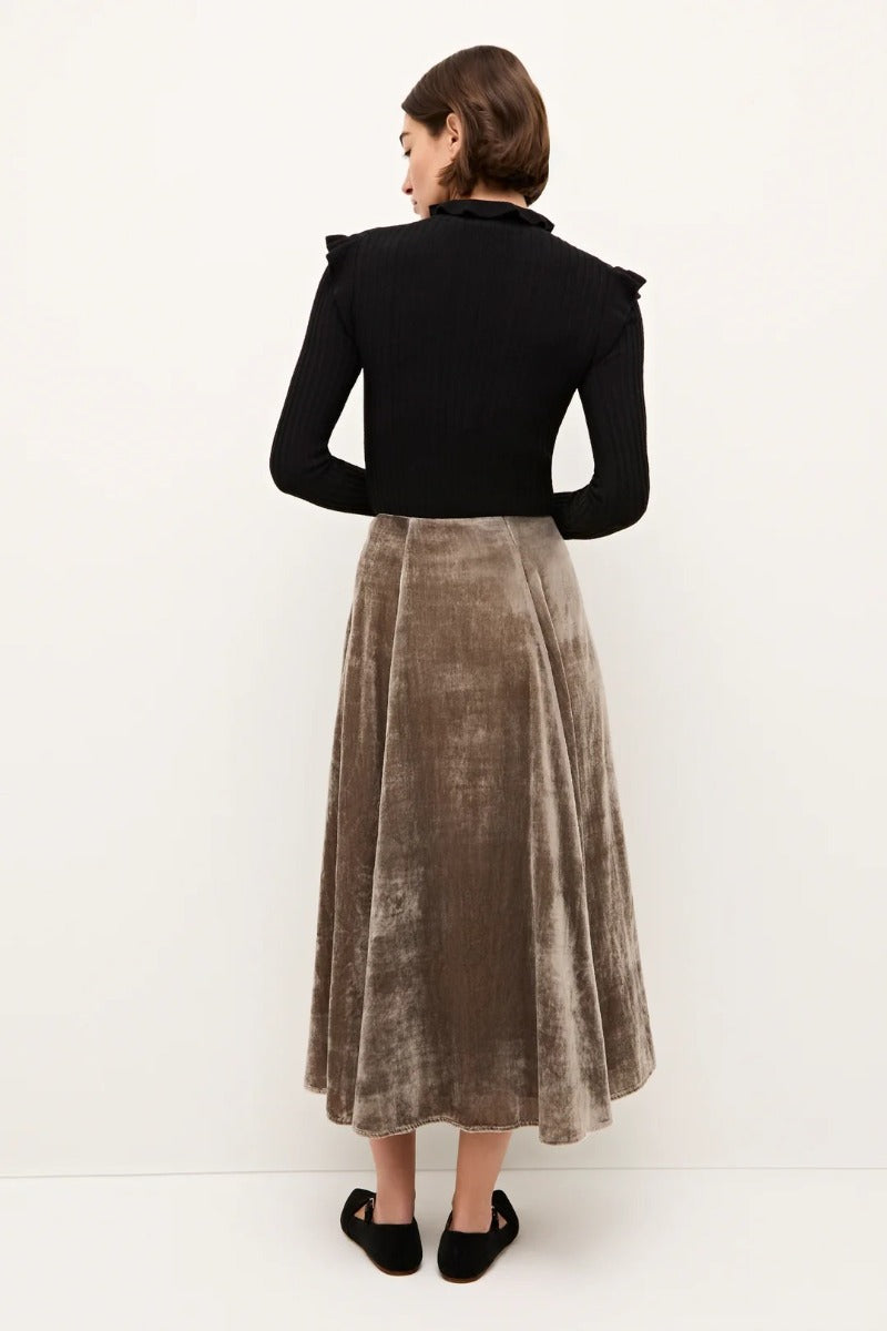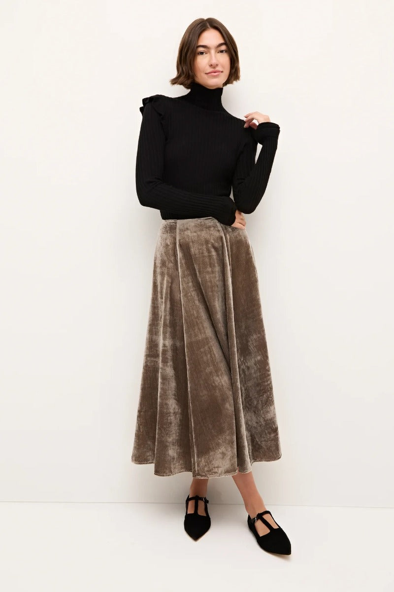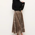 This elegant circle skirt cut from 100% poly velvet in a chic Pewter hue proves looking your best doesn't mean sacrificing comfort.