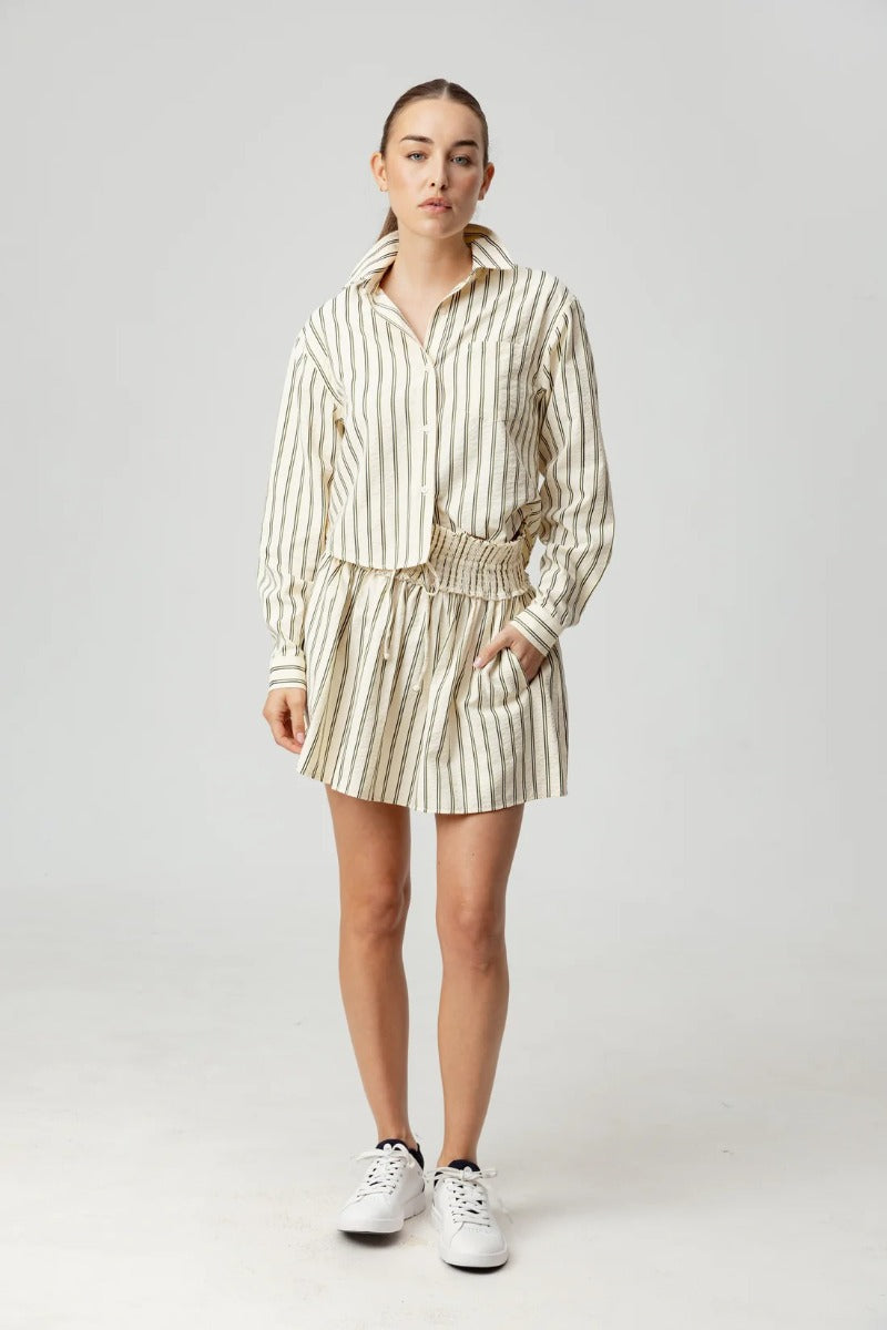 Meet Iona, a sister to our best-selling Rocky skirt. Iona features a wide-smocked waistband with a drawstring and side welt pockets. You'll love her paired back to our classic Turner Tank or as a matching set with the Vada shirt.