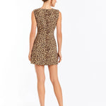 - Asymmetrical fit-and-flare mini dress featuring a crew neckline