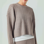 The Vallis sweater is knit from our luxuriously soft snowy viscose yarn, this piece features a delicate pointelle stitch that lends a subtle, feminine touch. Designed with a classic crew neckline and relaxed dropped shoulders, it echoes the comfort of your favorite sweatshirt while maintaining a refined silhouette. Ribbed cuffs and hem add a polished finish, while its boxy, slightly cropped fit is made to sit perfectly at the waistband of the matching Corsica Pants.