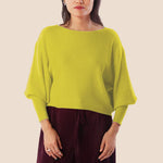 - Loose Fitted Boat Neck Top in Fine Rib Stitch with Long Dolman Sleeves