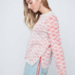 This Scarlet Combo sweater delivers a fresh, geometric pop of pattern in a soft, open-knit fabric that balances breathable comfort with a modern edge. Thoughtful details like the sporty ribbon trim and side-zip accents elevate the relaxed silhouette, making it an effortlessly chic staple for easy layering.