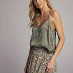 New this season, Ansel is perfect for layering or being styled alone. Made in our fine 100% sand-washed silk, Ansel has a v-neck fit updated with elegant lace trim. Ansel also features adjustable straps and racerback fit.