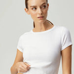 The latest edition to our Perfect Rib Tee collection: Meet the Brother tee. Fit as if you stole your little brother's t-shirt, the Brother tee has a shrunken fit through the body with a short cap sleeve. Finishing right at your belly button, the Brother tee is perfect for styling with high-waisted bottoms.