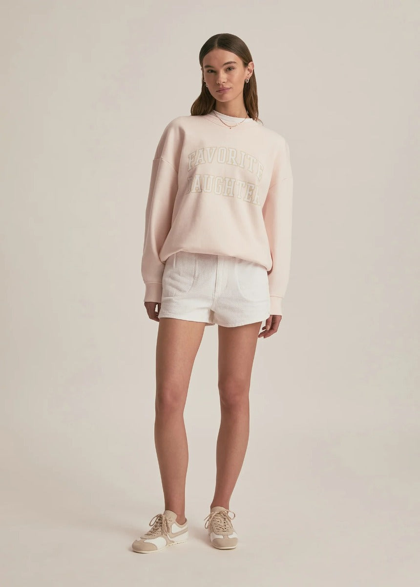 Give it the old college try with our oversized collegiate sweatshirt. With the drop shoulder and relaxed fit, this collegiate classic will go to the head of the class (and your closet).