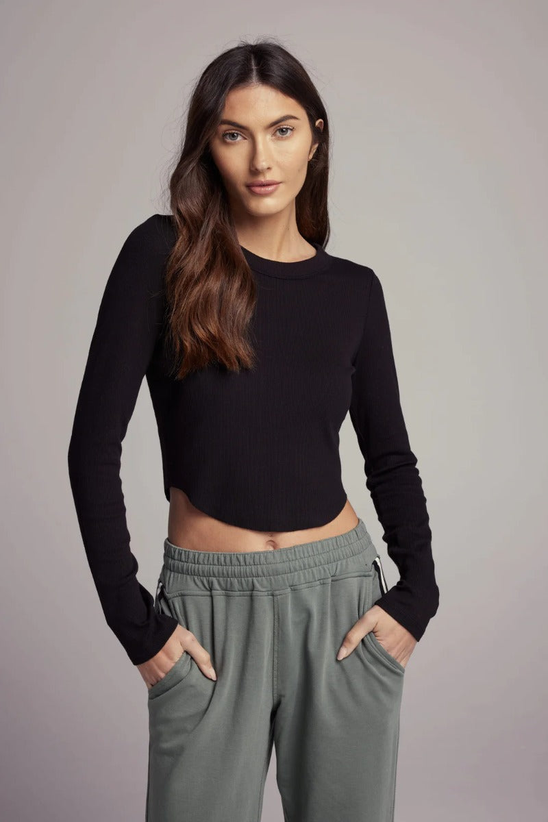 The perfect long sleeve tee is here. Perfectly fitted featuring thick binding on the neck and curved raw hem. Cecil is designed with a cropped length and is pre-shrunken and washed in Los Angeles.
