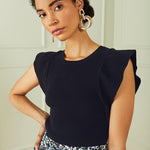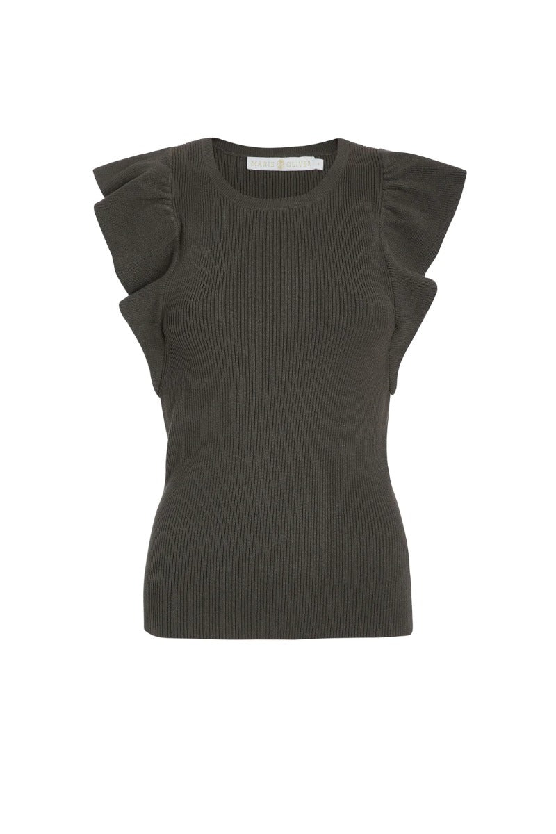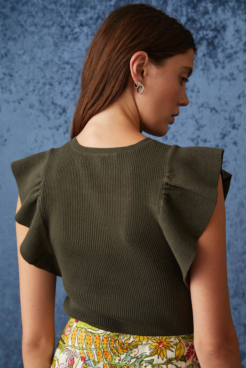 The Rory top is one of those foundational basics that great wardrobes are built upon. With a ribbed bodice and feminine ruffle sleeve, the snug figure-flattering top is designed to be tucked in.